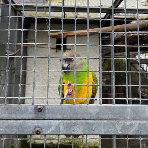 Itās 11am and Iāve found myself in a new-to-me park. Iām only in the area for a short time, and whenever I go anywhere new, my favourite thing to do is walk around and see what I might discover. As it turns out, there is a lot to discover here. This park contains a childrenās play area, a skate park, tennis courts, many walking paths, a huge green field that could host at least a few team sports, a cafe, a duck pond, and even a freaking outdoor aviary (where, of course, I chatted with all the birds! And they flew to follow me around a bit and whistled back, woo woo!).