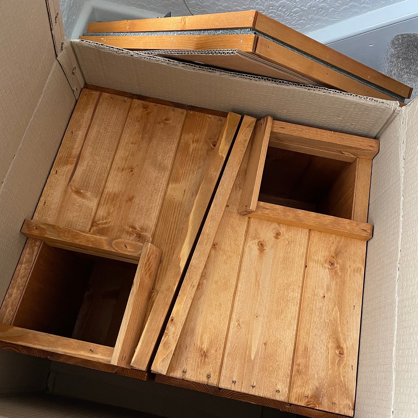 This gave me even more to research, and I learned babies (called hoglets) only stay with their moms for up to 8 weeks before heading out into the world on their own. And if they are out searching for food together, they are getting close. Also, hedgehogs hibernate for winter, and need to have enough warmth/weigh a certain amount beforehand to survive. With temps dipping down to near-freezing overnight now, they could go into hibernation anytime. This made me wonder how many hedgehog houses you could have in your garden, and I discovered the answer is: have as many as you want/have space for! I’m guessing you know what I did with this information…